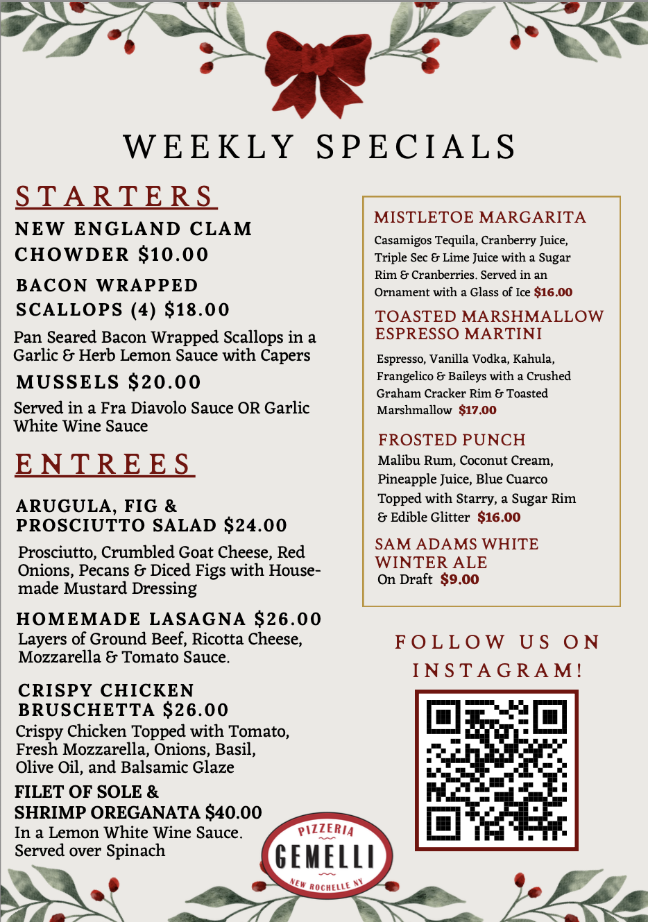 Fresh Flavors, Cozy Comforts, And Festive Cocktails Have Officially Hit The Menu 🍽️🍸 From Seasonal Starters To Holiday-Inspired Drinks, These Are Specials You Don’t Want To Miss 🎄❄️ Join Us And Treat Yourself This Week!